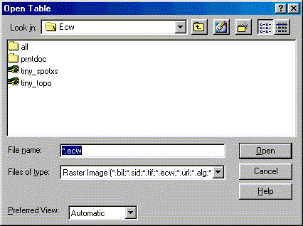 field and press RETURN. You should now see a list of .ecw files in the chosen directory.